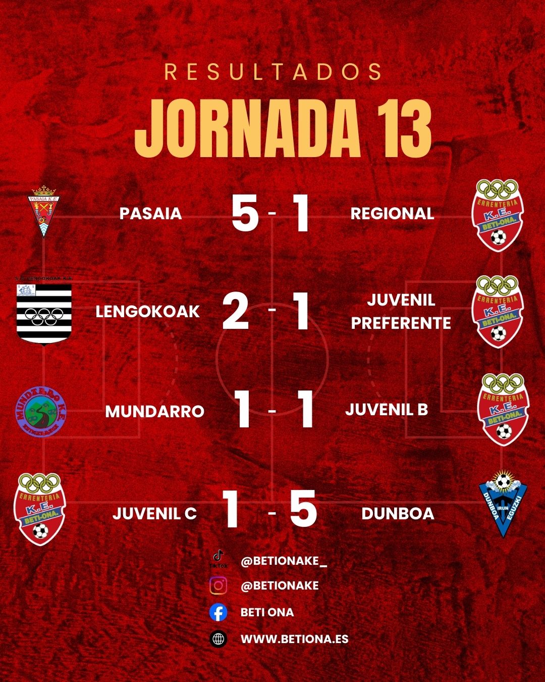 Último partido de la primera fase de una complicada liguilla para nuestros chicos del Cadete de Honor. Los Beraundarras visitaban el precioso pueblo de Lesaka para medirse al último clasificado, el Beti Gazte, en un partido que los nuestros habían preparado a conciencia para comenzar el año de la mejor forma posible. El partido empezó con poco juego y muchas dudas por parte de ambos equipos. El rival planteaba un juego directo en busca de sus 3 jugadores de ataque y no estábamos teniendo suerte en las caídas de balón y en las segundas jugadas. Se enfriaba el partido, los aficionados y la tarde en el pueblo navarro, mientras los equipos trataban de imponer su juego, cosa que no ocurrió y se llegó al vestuario con un aburrido 0-0. No estaba siendo un buen partido de nuestros chicos, que no conseguían encontrar ocasiones claras de gol. Ante la falta de juego, quedaba el balón parado; en una falta lateral bien ejecutada, el balón encontró la cabeza de nuestro delantero, que no desaprovechó la oportunidad y anotó el primero a falta de 15´ para el final. El partido seguía sin ritmo y sin chispa, pero en una ocasión por banda izquierda encontró un hueco el rival, que consiguió el gol del empate a falta de 5´ para el final. Sólo quedaba tratar de conseguir la victoria a la "épica", porque no estaba siendo el día del dominio del juego. Y vaya si lo hicimos: en una arrancada de nuestro delantero que regateó y tiró al palo, la fortuna quiso que el rechace fuera favorable y anotáramos el gol que nos daría la victoria y, con él, el haz de luz que necesitábamos para empezar este nuevo año sumando 3 puntos y con la ilusión de cambiar la dinámica de la primera fase. El equipo se prepara ya para disputar el siguiente partido, ya en la fase de descenso, buscando pelear la categoría con orgullo y el trabajo que prometemos tener, por el club, por nuestros aficionados y por todo el equipo que el año pasado, consiguió la categoría. ¡Juntos lo vamos a conseguir y el reto ya ha empezado! ¡A por ello chicos!
