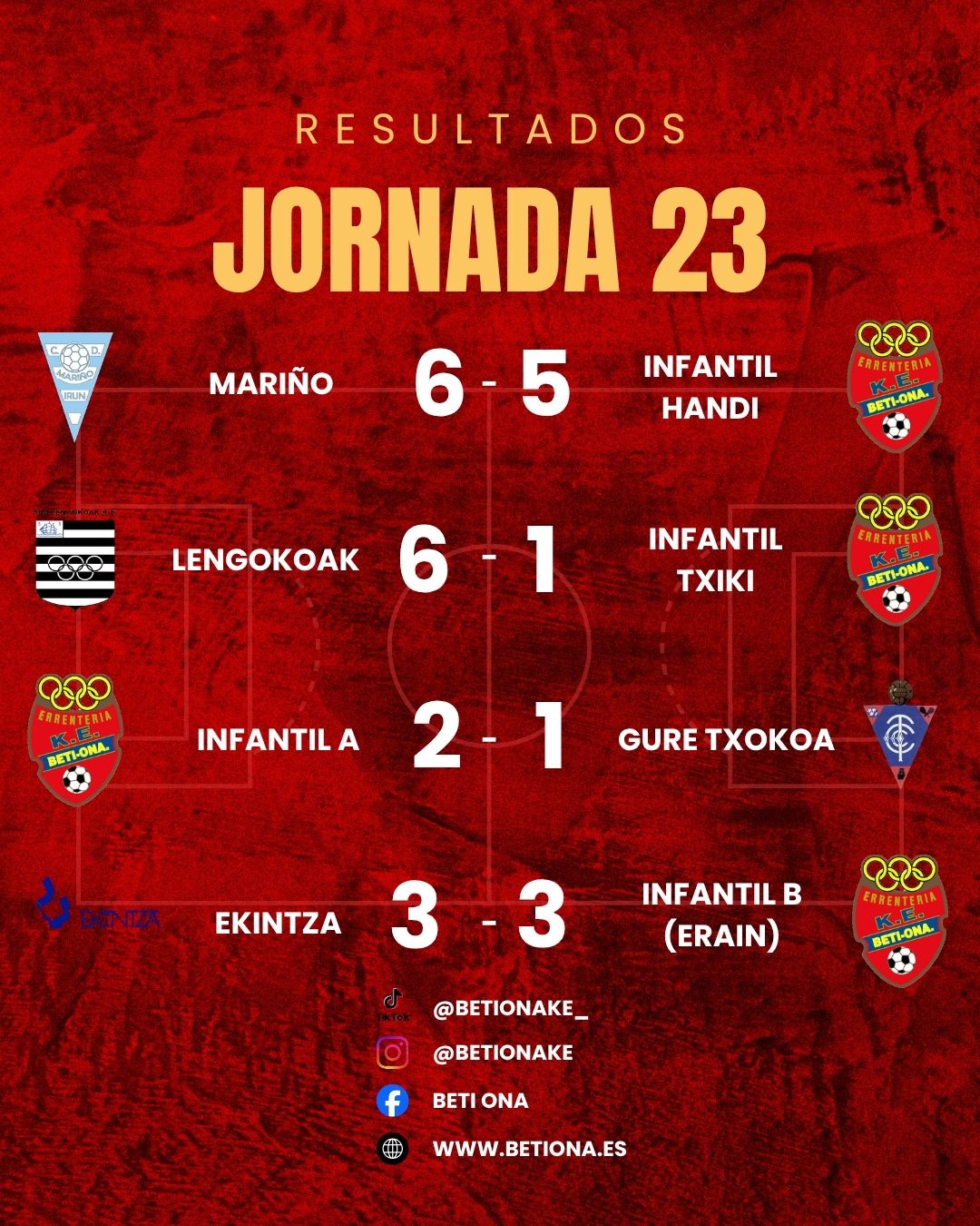 Tarde de fútbol para nuestro regional, que recibía en Beraun al Axular en casa. El inicio no fue el deseado para el conjunto local, que acusó cierta desconexión defensiva durante los primeros compases. Las circunstancias tampoco ayudaban, con varias ausencias importantes y un banquillo muy limitado. Fruto de ello, en apenas siete minutos el marcador reflejaba un 0-2 tras una concatenación de errores que el rival supo aprovechar. Lejos de venirse abajo, el Beti Ona reaccionó con carácter. Un penalti transformado en el minuto 12 supuso el 1-2 y, poco después, otro lanzamiento desde los once metros permitió igualar el encuentro. 2-2. Ese impulso anímico fue clave para completar la remontada en el minuto 28, iniciando una fase de intercambio constante de golpes que convirtió el partido en un espectáculo ofensivo. Los Beraundarras, enganchados con tardanza a la primera mitad, conseguían hacer dos goles más para poner el 4-2 que parecía encarrilar el choque, pero el rival respondió de inmediato, llegando al descanso con un ajustado 4-3. La segunda mitad mantuvo el mismo guion. El Beti Ona amplió distancias nada más reanudarse el juego (5-3), aunque nuevamente el oponente recortó diferencias. Ante las dificultades para sacar el balón jugado desde atrás, el equipo optó por un planteamiento más directo, buscando seguridad y evitando riesgos innecesarios en el primer tercio de campo. En el tramo final, el conjunto local tiró de coraje y determinación para sentenciar el partido. Dos nuevos tantos en los últimos diez minutos establecieron el definitivo 7-4, asegurando tres puntos valiosos pese a no haber sido el encuentro más sólido en el aspecto defensivo. El choque dejó un sabor agridulce: por un lado, la satisfacción de haber sabido competir y sacar adelante un partido complicado; por otro, la evidencia de aspectos defensivos a mejorar. En cualquier caso, fue un duelo de los que hacen disfrutar al aficionado por su intensidad y goles, aunque invitan a la reflexión desde el banquillo. Toca corregir y trabajar en los errores y afrontar el siguiente partido, previo al descanso de Semana Santa. ¡Ánimo equipo!
