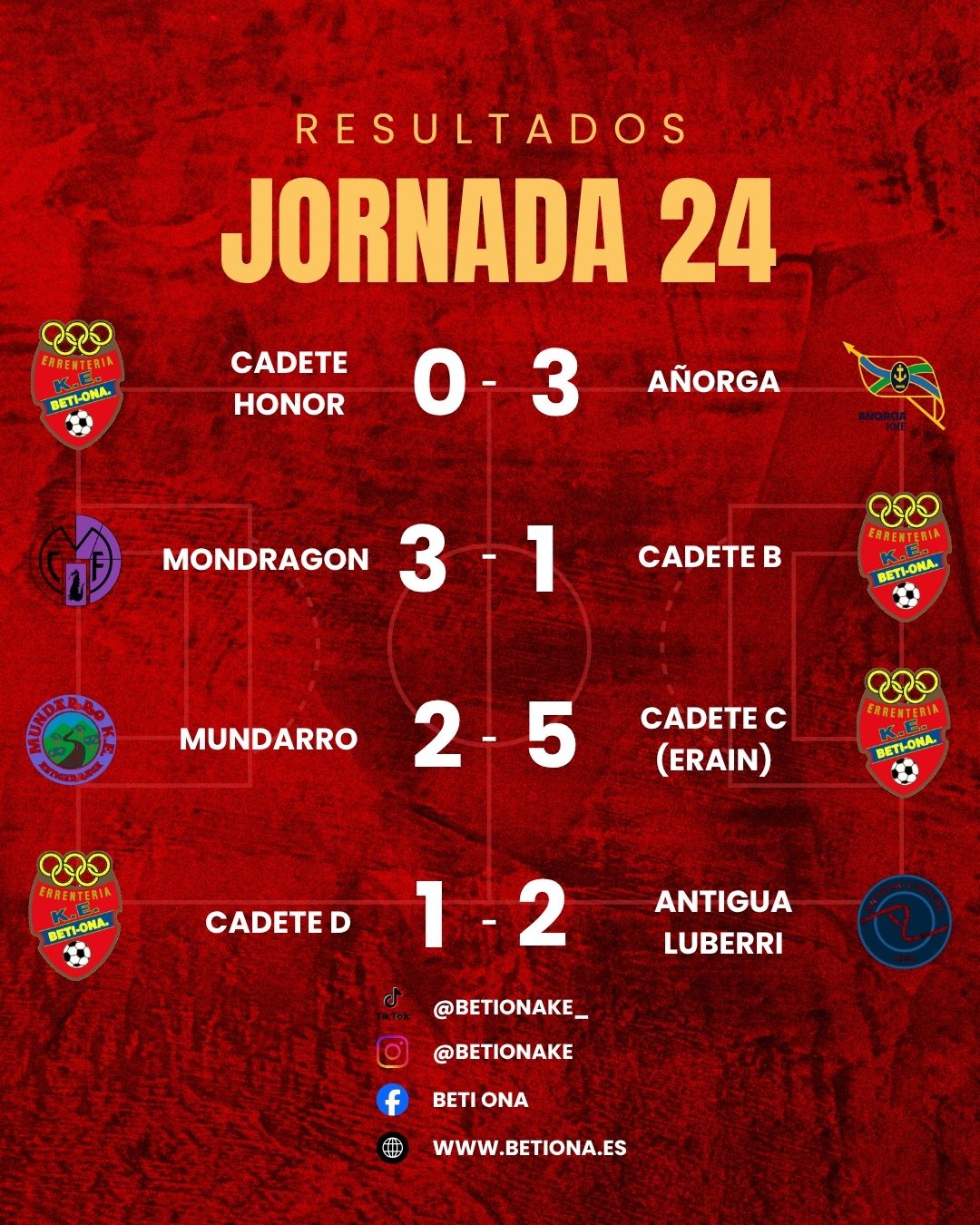 El primera cadete B viajaba este sábado hasta el campo de Mojategi, en Mondragón, para enfrentarse al séptimo clasificado, justo por detrás de nuestros Beraundarras. Desgraciadamente no podemos ni queremos pasar por alto el pésimo ambiente deportivo que se vivió desde el primer minuto en el campo. Además de las múltiples agresiones físicas en modo de patadas, agarrones, puñetazos etc., a nuestros chicos y el pasotismo anunciado del colegiado del partido, al final del encuentro un grupo de chavales de la grada bajaron al campo con intención de agredir a varios de nuestros futbolistas. El partido tuvo todo lo negativo que podría haber en un campo de fútbol para la formación en valores de los jugadores. Un desagradable episodio que repudiamos y condenamos, sea cual sea el campo en el que suceda. No se puede hablar demasiado del partido, ante un rival que buscaba hacer daño en cada acción a los nuestros y que ni árbitro ni staff del equipo rival parecían dispuestos a detener. Para el Beti Ona, la prevalencia de la deportividad está por encima de cualquier tipo de resultado y cualquier objetivo. Una pena que se den situaciones así. El resultado, 3-1, lo de menos. Condenar estos hechos, lo más importante.