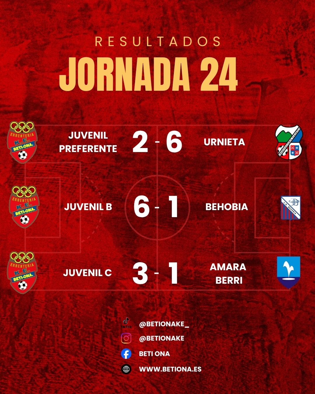 El frío de la tarde del sábado en Beraun no impidió que se viviera un partido intenso y cargado de emoción para nuestro juvenil preferente, que recibía al Urnieta en un duelo clave por los objetivos de la temporada. El encuentro comenzó con mucha igualdad, con dos equipos bien plantados sobre el terreno de juego. Fue el Urnieta quien golpeó primero, anotando en el 30´ tras un desafortunado gol en propia puerta Se adelantaba el rival así en el marcador y obligaba a los nuestros a remar contracorriente. Lejos de venirse abajo, el equipo reaccionó con carácter y determinación, logrando primero el empate, en el 41´ y, poco después, culminando la remontada con un golazo en el 44´, para marcharse al descanso con ventaja. Tras el paso por vestuarios, el guion cambió. Los locales salieron algo fríos, circunstancia que aprovechó el rival para igualar el choque. Corría el minuto 52´. Sin embargo, el fútbol volvió a demostrar su imprevisibilidad: apenas unos instantes después, encajábamos el 2-3 tras errar una acción clarísima de gol a favor. El equipo acusó duramente el varapalo del tercer gol en contra y a partir de ahí pareció salir todo mal: el rival volvió a golpear en el 77´ y terminó de enterrar las aspiraciones de los locales, que quedaron noqueados por el cuarto gol rival. En los instantes finales el rival dio la puntilla a los nuestros, con dos goles más, ante la impotencia, la tristeza y la incredulidad de la afición local. Al final, el resultado reflejó la crudeza del fútbol: se llevó la victoria el equipo que estuvo más acertado en los momentos decisivos en ambas áreas. Sólo nos queda levantarnos y seguir peleando hasta el último partido, para obligar al rival a no fallar. ¡A por ello equipo!