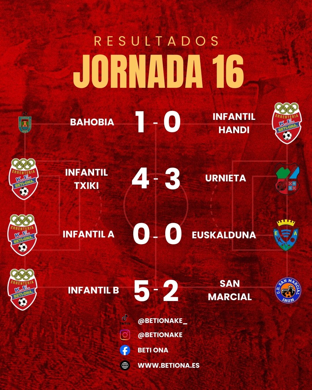 Nuestros txikis disputaban su novena jornada de liga ante un difícil rival. El partido no comenzó de la mejor manera para los nuestros que encajaban un gol tempranero que obligó a remar desde el inicio con el 0-1 en el marcador. Pese al golpe inicial, el equipo supo reaccionar con rapidez, tomando la iniciativa y logrando el empate pocos minutos después gracias a su insistencia. Cuando mejor estaban los nuestros, una falta desafortunada permitió al rival volver a adelantarse, situando el 1-2 con el que se llegó al descanso tras una primera mitad igualada y muy disputada. Tras el paso por vestuarios, los cambios introducidos dieron un impulso clave al equipo. La entrada de piernas frescas aportó energía, intensidad y mayor profundidad en ataque, lo que permitió a nuestros txikis darle la vuelta al marcador y colocarse con un merecido 3-2. En los minutos finales, el Urnieta apretó en busca del empate y consiguió igualar el encuentro, añadiendo aún más emoción al tramo decisivo. Sin embargo, cuando parecía que el partido terminaría en tablas, ya en el descuento y tras una gran contra, el Beti Ona encontró el gol definitivo que selló la victoria por 4-3. Gran esfuerzo colectivo de todo el equipo, que sigue mostrando una clara progresión y que deja muy buenas sensaciones. ¡Bien hecho txikis!